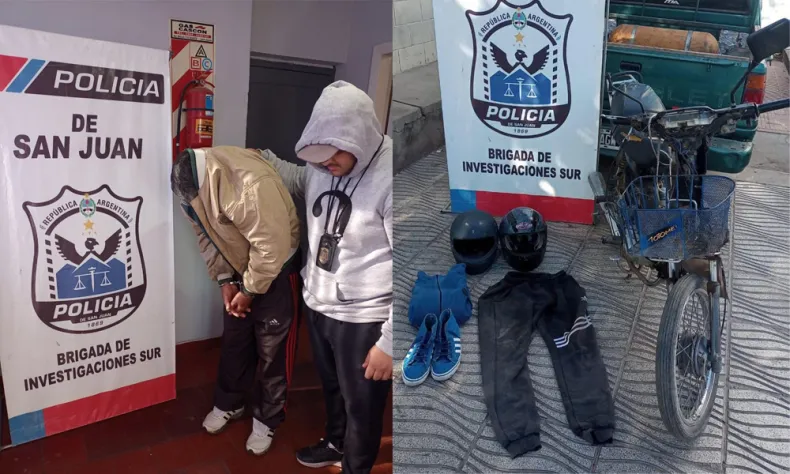 El primer procedimiento se llevó adelante en una casa del barrio Huarpe, dónde los pesquisas secuestraron una moto 110, rodado en el cual se conducían los malvivientes a la hora de cometer el robo; la ropa y la suma de 86.000 pesos.