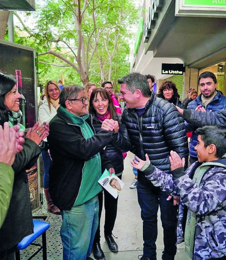 El candidato a gobernador de Cambia San Juan, junto a la intendenta electa Susana Laciar recorrieron las calles del microcentro y recibieron el apoyo de sus adherentes