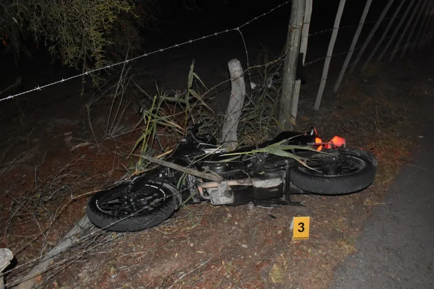 En horas de la noche, más precisamente a las 00.45 horas, un motociclista circulaba en su Rowser 200cc. por callejón Los Serranos en Ullum cuando perdió el control de su moto y terminó impactando contra el poste madera sostén del alambrado de una finca.