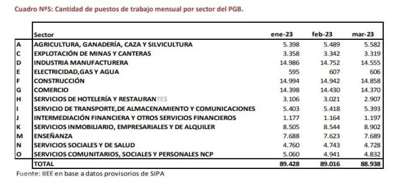 Los sectores que contemplan la mayor cantidad de puestos de trabajo registrado son: Construcción, Industria manufacturera y Comercio, con una participación relativa respecto del total de puestos de 16,7 %, 16,4 % y 16,2 % respectivamente.