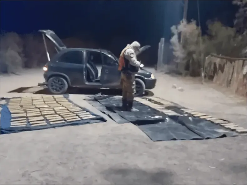 La sorpresa para los efectivos se produjo cuando procedieron a realizar una requisa más profunda en el rodado, cuando encontraron varios paquetes tipo ladrillos envueltos en cinta de embalar.