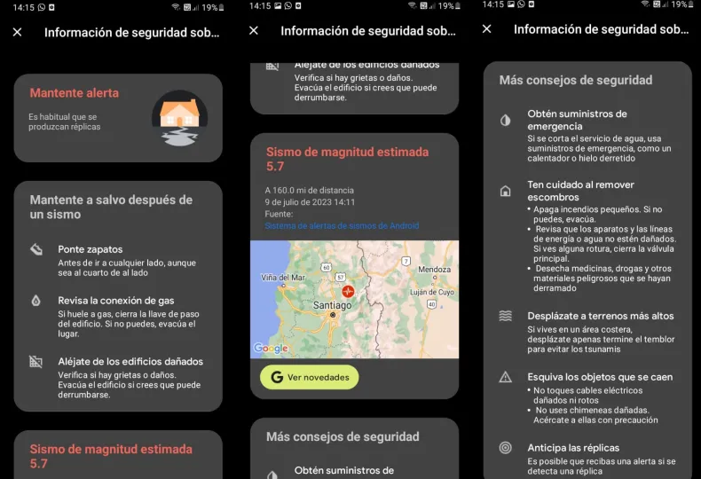 Se trata de una nueva función que Google, dueña de Android puso en funcionamiento hace poco en la región de Cuyo. Se denomina Sistema de Alertas de Terremotos. Fue creado como una herramienta para prevenir eventos sísmicos, mediante la recepción de notificaciones en los celulares. Cabe destacar que la alerta de atención es para temblores moderados de 1 a 3 grados de magnitud. También hay las denominadas "alerta de acción", que avisan a los usuarios cuando la intensidad es de grado 5 o superior. Acá se muestran instrucciones en pantalla completa y el teléfono reproduce un sonido fuerte.