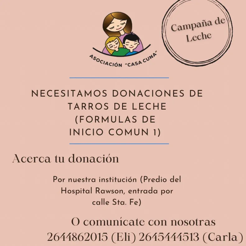 Las personas que quieran realizar una donación pueden llevar los tarros de leche por la institución, ubicada en el predio del Hospital Rawson (entrada por calle Santa Fe), en cualquier horario.