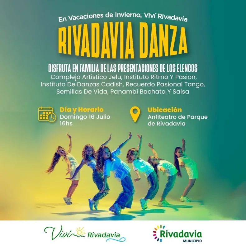 El próximo domingo, a las 16 horas, en el parque de Rivadavia se llevará adelante un encuentro de música y danza. Todo se desarrollará en el Anfiteatro y participarán más de 6 institutos del departamento.