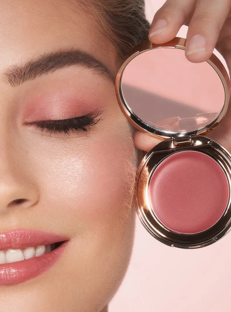En el caso del rubor si tu rostro es más largo que ancho (ovalado), aplica el blush (rubor) en la parte superior de tus pómulos difuminando hacia la sien y ligeramente hacia las orejas. Así se logra resaltar y darles más definición a los pómulos.