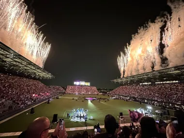 A pesar de que el evento se retrasó por las fuertes tormentas que azotaron a Miami, el espectáculo finalmente se pudo llevar adelante sin complicaciones y el astro argentino recibió el cariño del público, que colmó el estadio para ver de cerca a su nueva estrella: la presentación fue hecha bajo el lema "Este es nuestro momento".