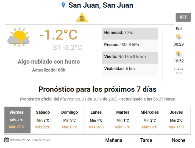 El dato se desprende de la página del SMN, del registro de las 8 de la mañana. La máxima para este viernes será de 29°C.