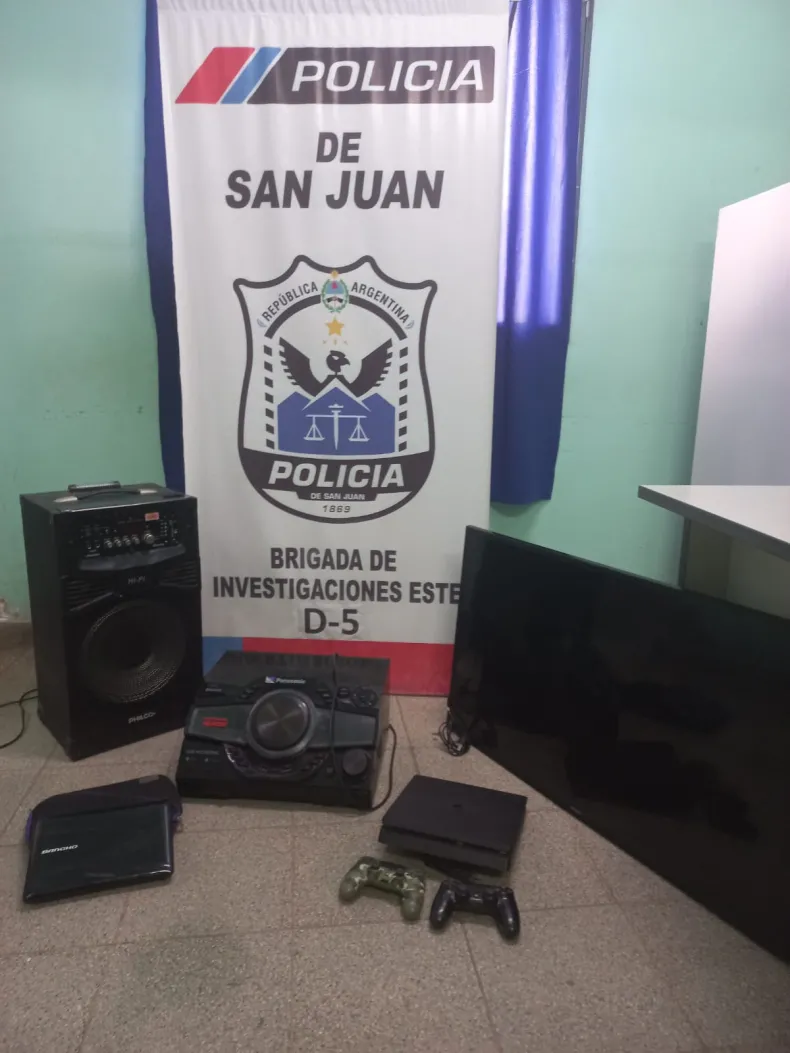 Tras realizar varios allanamientos en tres viviendas del barrio Bermejo, de este departamento, los investigadores procedieron a secuestrar un televisor marca Samsun de 43 pulgadas, una PlaySation PS4 con don joystick, una consola de sonido marca Panasonic, un notebook marca Bangho y una parlante marca Philco, que ya fueron reconocidos por los damnificados.