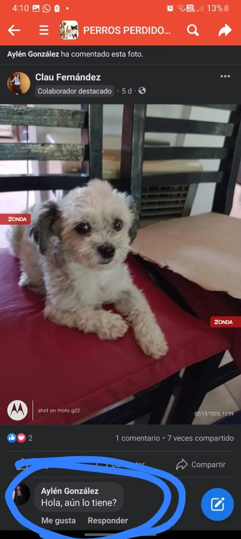 "Ni si quiera tocaron el timbre para decir que la perrita estaba en la puerta. Se la robaron", manifiesta. Asimismo, contó que esas personas no habían sido vistos en el barrio, ni si quiera por los otros vecinos a los que consultó. "Si llega a aparecer es si encontramos esta chica", indica.