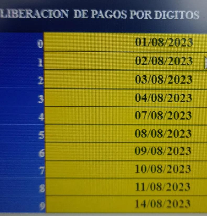 El martes, comenzarán a cobrar aquellos cuya última cifra de su documento finalice en 0. En ese orden, los siguientes días cobrarán los demás, hasta culminar con el calendario de pago el próximo 14 de agosto.
