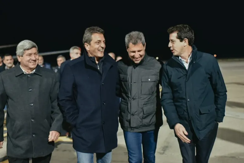 En horas de la noche de este jueves, el precandidato a presidente de la Nación por Unión por la Patria, Sergio Massa, pisó tierras sanjuaninas y fue recibido por el gobernador, Sergio Uñac, quien también aspira a ser candidato a senador, el 13 de agosto, en el marco de las PASO.