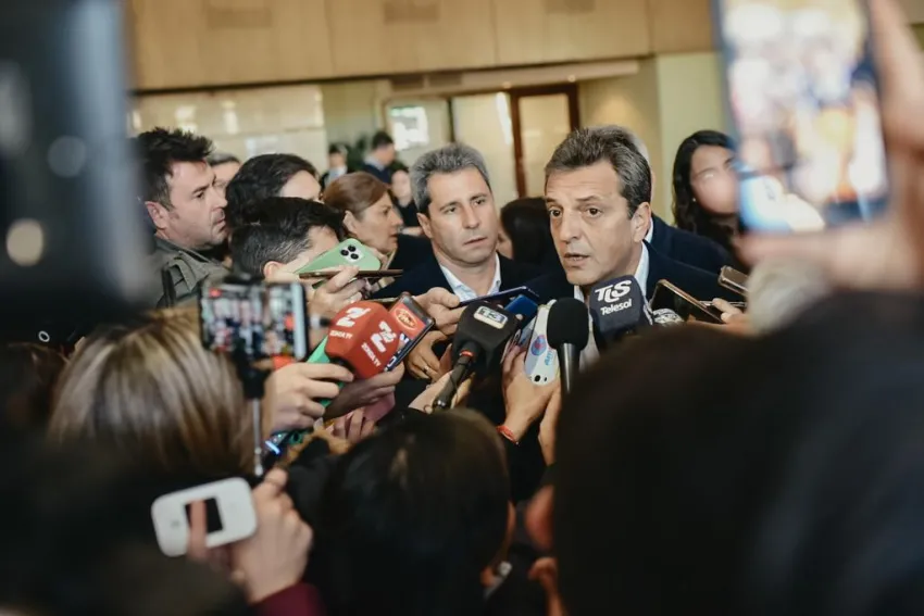 Sergio Massa habló con los medios de comunicación antes de su visita a las obras de El Tambolar y resaltó el modelo político y económico de San Juan. Acompañado del gobernador Sergio Uñac, el precandidato a presidente por el frente Unidos por la Patria indicó "de alguna manera hay que tratar de tomar a San Juan como ejemplo".