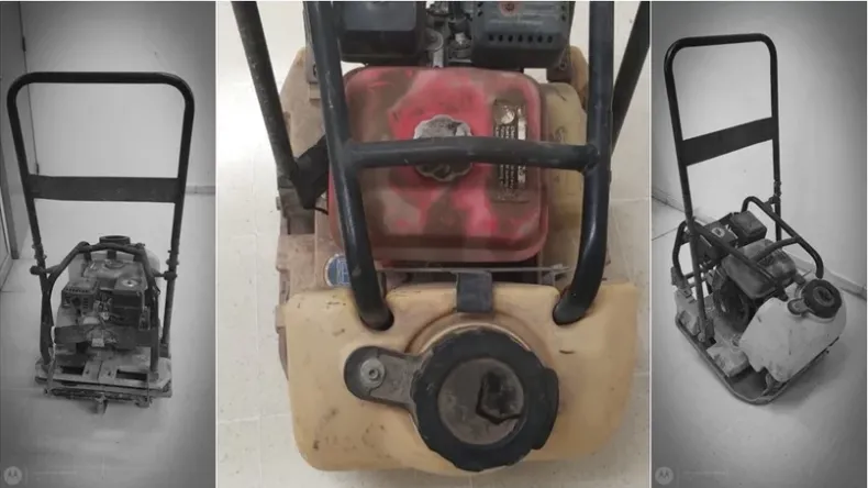 Se trata de una máquina compactadora manual de tierra, marca GS de color amarillo y tanque de combustible rojo. Cualquier consulta dirigirse hacia la Seccional 36.