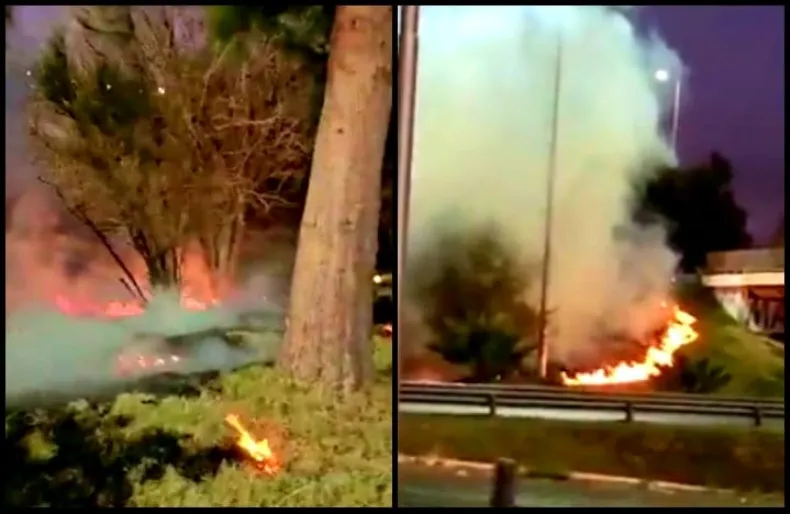 El primer incidente ocurrió en un sector cercano al puente de la RN 40 y la calle 5, ubicado en el límite entre las localidades de Rawson y Pocito. Pocos metros más adelante, en el lateral oeste de la ruta nacional, entre Quiroz y Boulevard Sarmiento, se desató el segundo incendio.