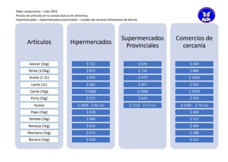 Como todos los meses, la Asociación Amas de Casa del País realiza un informe respecto a la evolución de la inflación en alimentos, consultando en negocios de cercanía y supermercados de la provincia.