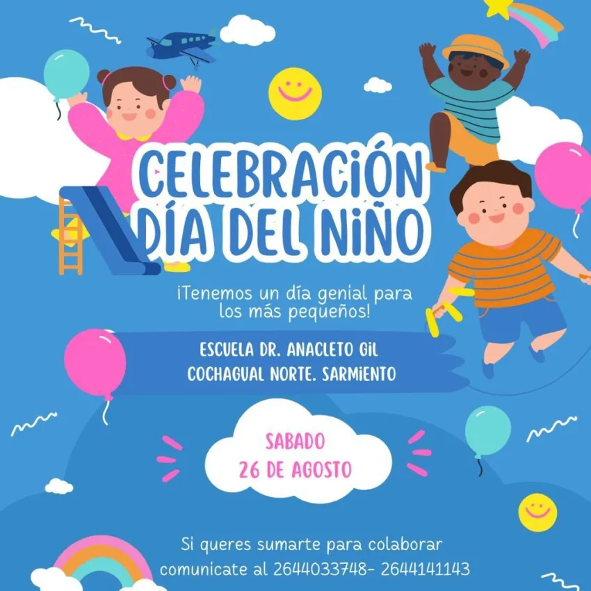 El próximo sábado 26 de agosto los más de 150 alumnos de la escuela Anacleto Gil de Cochagual Norte, departamento Sarmiento, festejarán el Día del Niño.