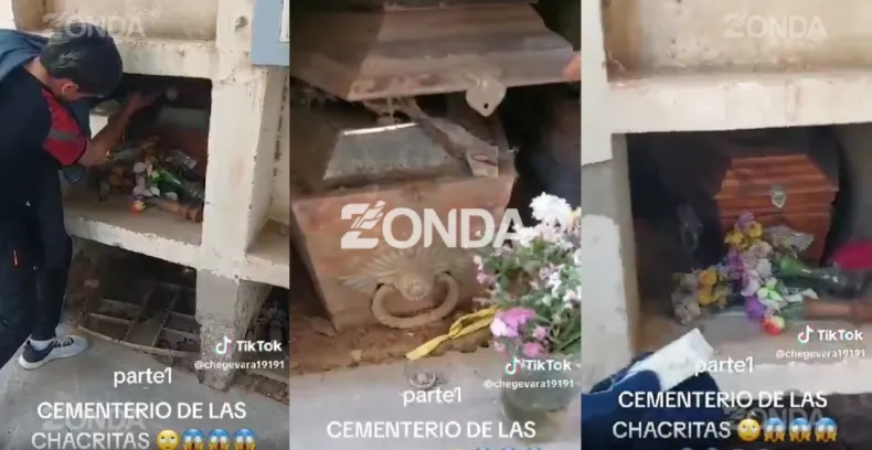 Todo fue filmado y subido a la cuenta @cheguevara19191 de TikTok. En esos registros, por su parte, se los ve profanar más de 3 tumbas. Incluso, grabaron una foto de una difunta y, de uno de los cajones, extrajeron un elemento sin importarles el valor sentimental para la familia de cada uno de ellos.