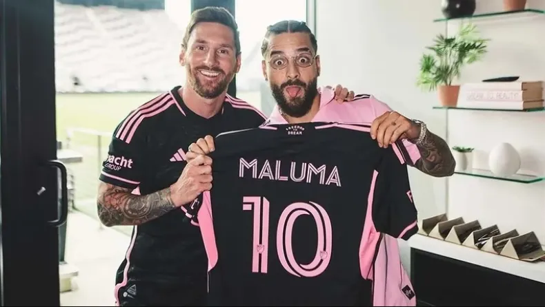 En plena gira denominada Don Juan World Tour, el artista latino está recorriendo Estados Unidos y realizó una parada en el DRV PNK Stadium para poder encontrarse con el capitán de las Garzas. Vestido con la camiseta negra de la franquicia que lo cobijó recientemente, Leo le consultó a Maluma: "¿Negro o rosa?", en referencia a las dos remeras que llevó para que luzca su invitado.