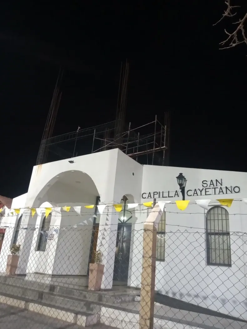 Sobre esta obra destacó que "la patada de arranque fue encontrar una factura hecha en un comercio local pagada por Báez Laspiur que estaba a punto de perderse y el dueño nos permitió que una factura del 2008 lo podamos reactivar y comenzar la construcción. Eso sumado al esfuerzo de la comunidad hace que ya tengamos un 70% de todos materiales. Pero aún nos falta por eso pedimos también que ayuden a San Cayetano a terminar su campanil", recalcó Nieto. Después de la bendición, se celebrará la última misa del día.
