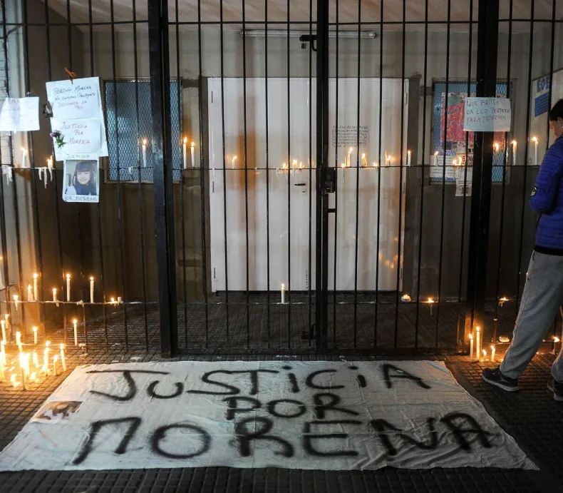 Los vecinos van ingresando uno por uno a la casa, para dar sus respetos. El silencio y frio es notable, un grupo de vecinos llegó con una sábana escrita con aerosol, que expresaba lo sencillo: "Justicia por Morena".