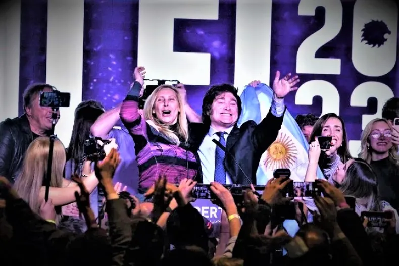 En referencia al tercio de argentinos que eligieron a LLA como su expresión de cambio, Milei proclamó: "No solo hemos obtenido la mayor cantidad de votos individualmente, recordando que hace solo dos semanas se esforzaban por desestimarnos, incluso auguraban que ni siquiera estaríamos en tercer lugar", desatando risas en el público.