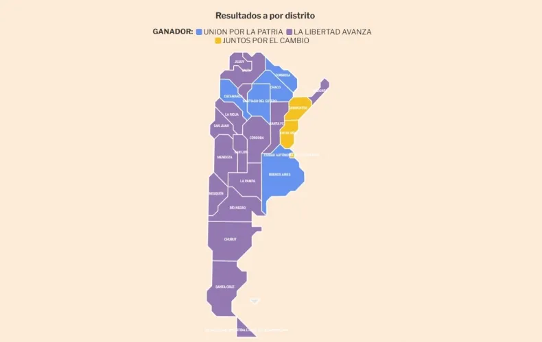 Milei se hizo muy fuerte en las provincias del Norte, Cuyo y la Patagonia, y algunas provincias del centro, mientras que los partidos tradicionales lograron triunfos en la región Pampeana y el Litoral.