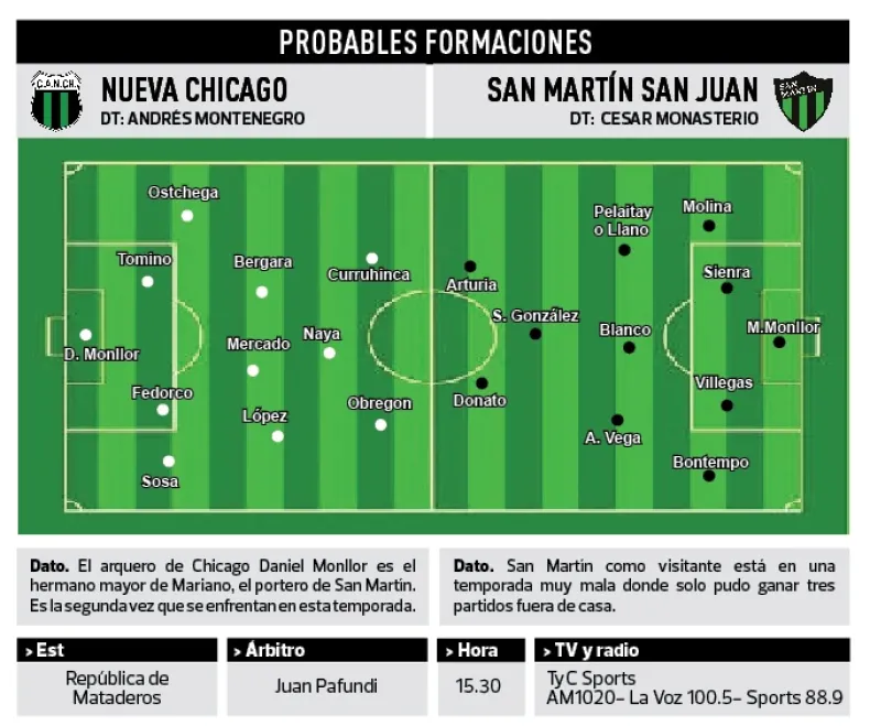 San Martín vuelve después de 8 años al estadio República de Mataderos donde nunca pudo ganar para enfrentar a Nueva Chicago. Ambos suman 40 puntos y están obligados a ganar para no perder pisada a los de arriba.