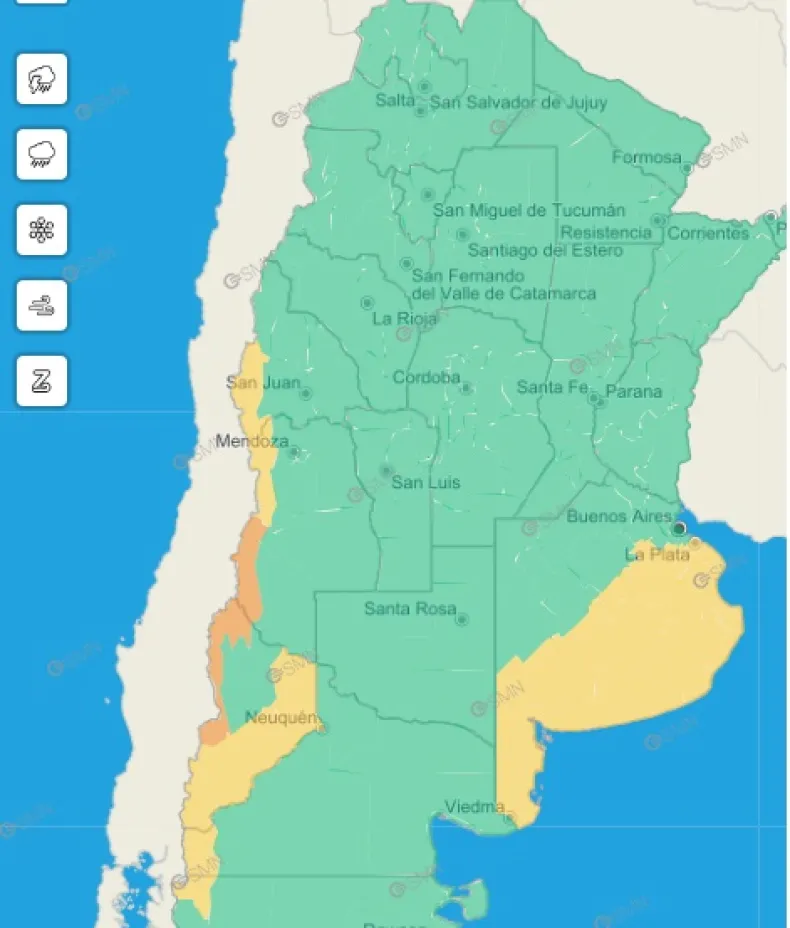 El Servicio Meteorológico Nacional (SMN) ha emitido una nueva alerta por nevadas para el próximo sábado 19 y domingo 20 de agosto en la cordillera de San Juan. Además, se advierte que este fenómeno estará acompañado por intensas ráfagas de viento del norte en las áreas llanas.