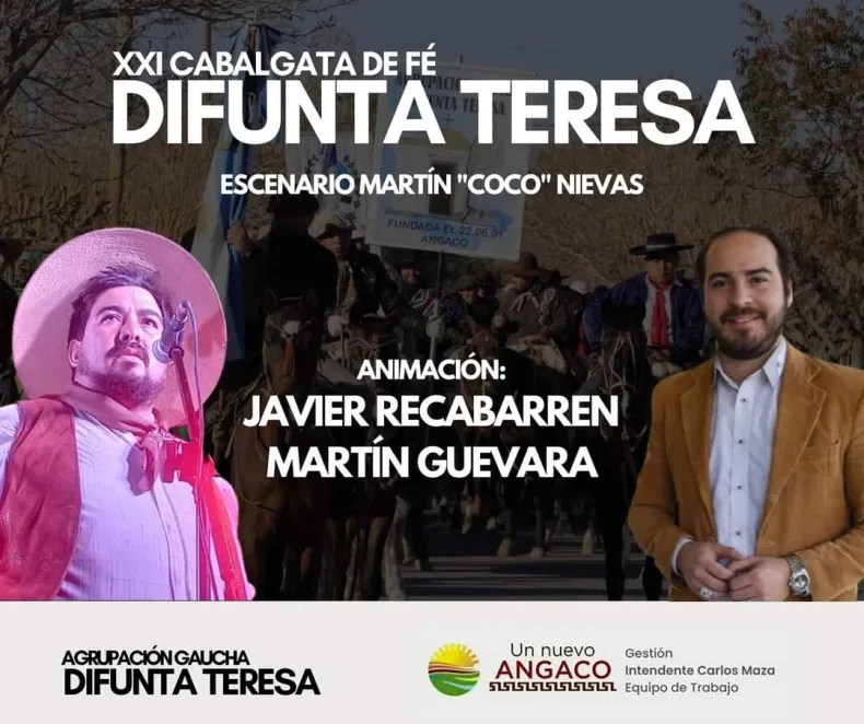 Con gran expectativa, este sábado 19 a partir de las 10 de la mañana tendrá lugar la tradicional Cabalgata de Fe a la Difunta Teresa, en su XXI edición, evento religioso que está incluido dentro de los agasajos en homenaje a Lucas Novaro.