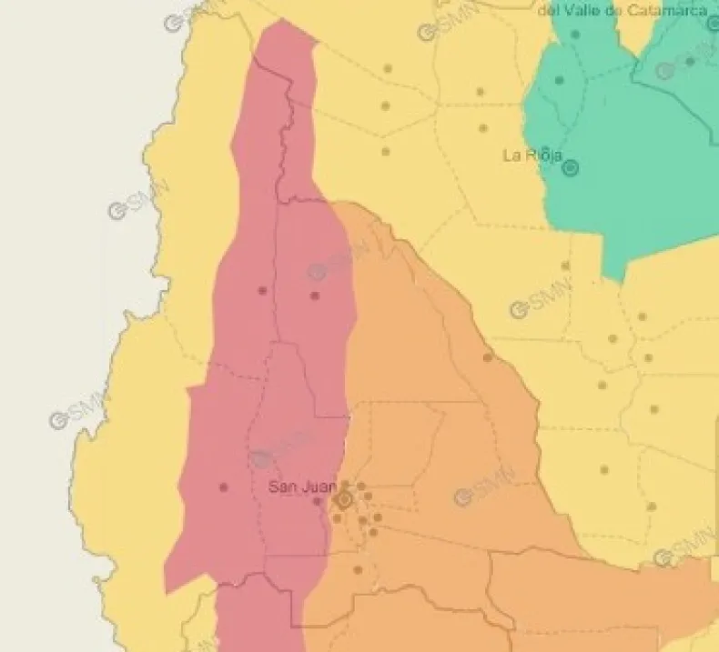 Según indica el SMN, que emitió tres alertas de color amarillo, rojo y naranja, en San Juan, para la Precordillera de Calingasta, de Pocito, de Rivadavia y de Sarmiento, como así también en los departamentos de Ullum y Zonda, se espera un lunes inestable.