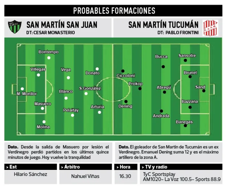 Esta tarde en Concepción a las 16.30 habrá duelo de San Martín. El sanjuanino contra el tucumano, el Verdinegro con el Cituja y ambos con la obligación de ganar.