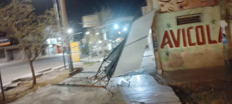 Con la llegada del fuerte viento, también hubo caída de postes y de algunos carteles.