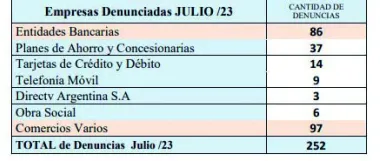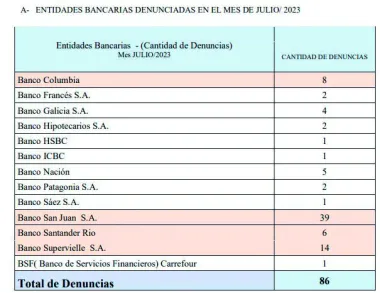 Con 86 casos, los bancos son los que encabezan el ranking provincial entre los más denunciados en Defensa al Consumidor. Si a ese número se le suma las 14 que existieron por tarjetas de seguros practicamente alcanza a la mitad del total de las efectuadas en la dirección que en el mes de julio fue de 204 denuncias.