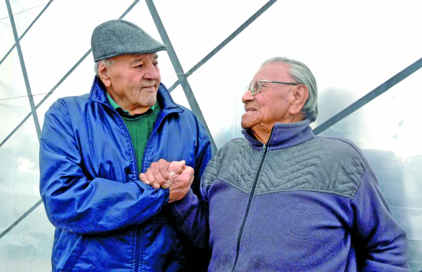 La charla con ambos protagonistas va por varios lugares. "Yo siempre he sido muy andariego, conozco casi todo el país, incluso nos llevaron siendo niños con Eva Perón a Buenos Aires, a nosotros nos tocó parar en Tandil", dice Coco. En cambio "este -lo señala a Luis- siempre fue más casero". Luis lo mira y sonríe asistiendo.