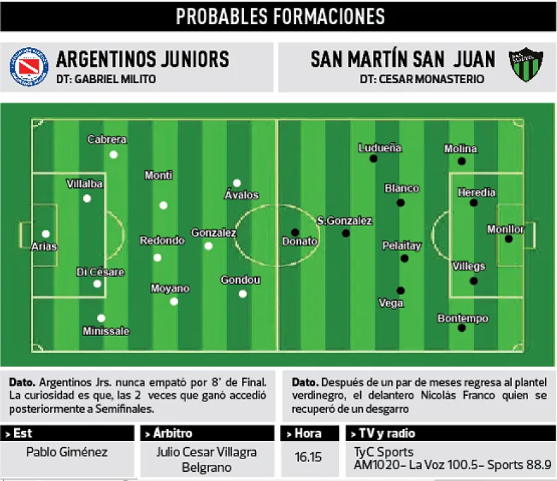 San Martín busca el pasaje a cuartos de final de la Copa Argentina cuando se enfrente con Argentinos Juniors en el estadio de Belgrano de Córdoba. El Verdinegro va con una mezcla de titulares y suplentes.