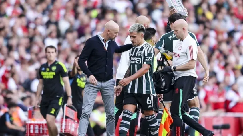 Lisandro Martínez, jugador de la Selección Argentina, salió lesionado en la derrota de su equipo, el Manchester United, ante el Arsenal por la Liga Inglesa de Fútbol, a pocos días del inicio de las Eliminatorias Sudamericanas.