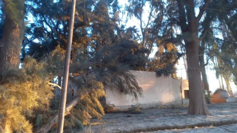 La intensidad del viento también afectó postes y tendido eléctrico, provocando la caída de ramas en las calles, lo que obstaculiza la circulación vehicular en la zona.