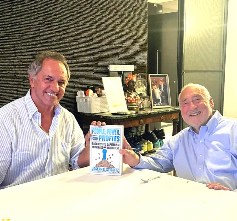 "Fue un placer poder disfrutar su sabiduría compartiendo su visión sobre los Brics y la economía mundial. Tuve la oportunidad de darle mi análisis sobre el escenario político en Argentina y lo que está en disputa", detalló Scioli sobre el encuentro.