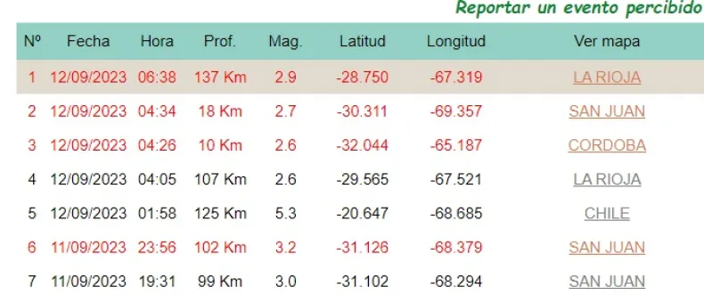 La madrugada y noche fue bastante movida para los sanjuaninos y es que el Instituto Nacional de Prevención Sísmica detectó dos sismos durante las últimas horas del lunes y en la madrugada del martes. Los mismos ocurrieron a las 23:56 y 04:34 de la mañana.