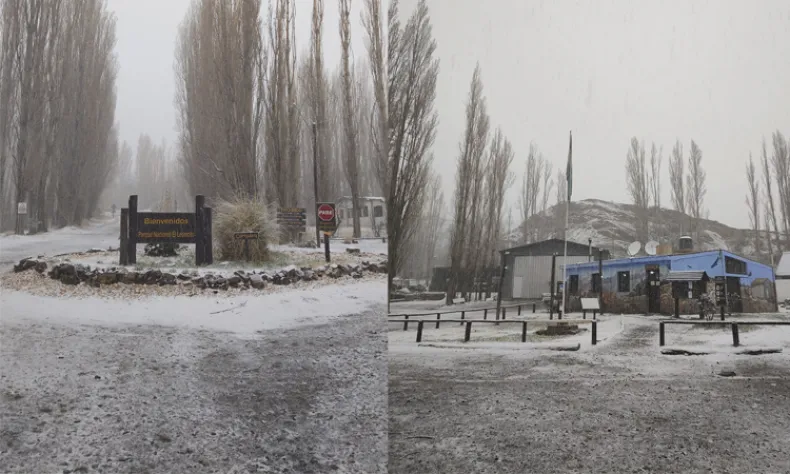 El Leoncito amanece cubierto de nieve tras el viento zonda
