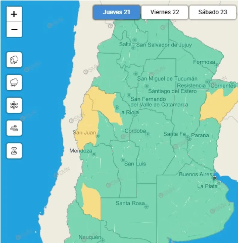 El Servicio Meteorológico Nacional emitió un alerta amarilla para la tarde de este jueves por la llegada de viento zonda.