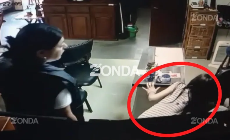 En ese momento, entró en acción la pequeña de unos 10 u 11 años, quien fue obligada a que, de manera rápida, se agache sobre un escritorio y se haga con una cartera.