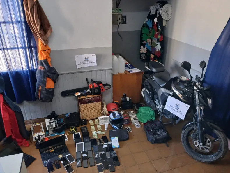 Los ladrones se habían llevado una moto, marca Yamaha de 160 cc, cascos, microscopios, celulares, tablet, cables, cargadores, ropas, bolsos, mochilas, un amplificador y dinero en efectivo entre otros efectos.