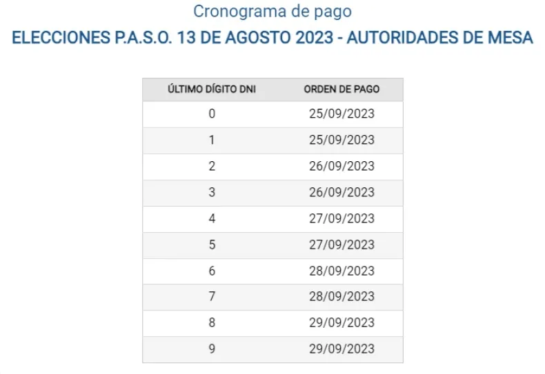 Según el calendario dispuesto por la Justicia Electoral, el Correo Argentino será el encargado de realizar los pagos desde este lunes y hasta el 29 de septiembre según la terminación del DNI.