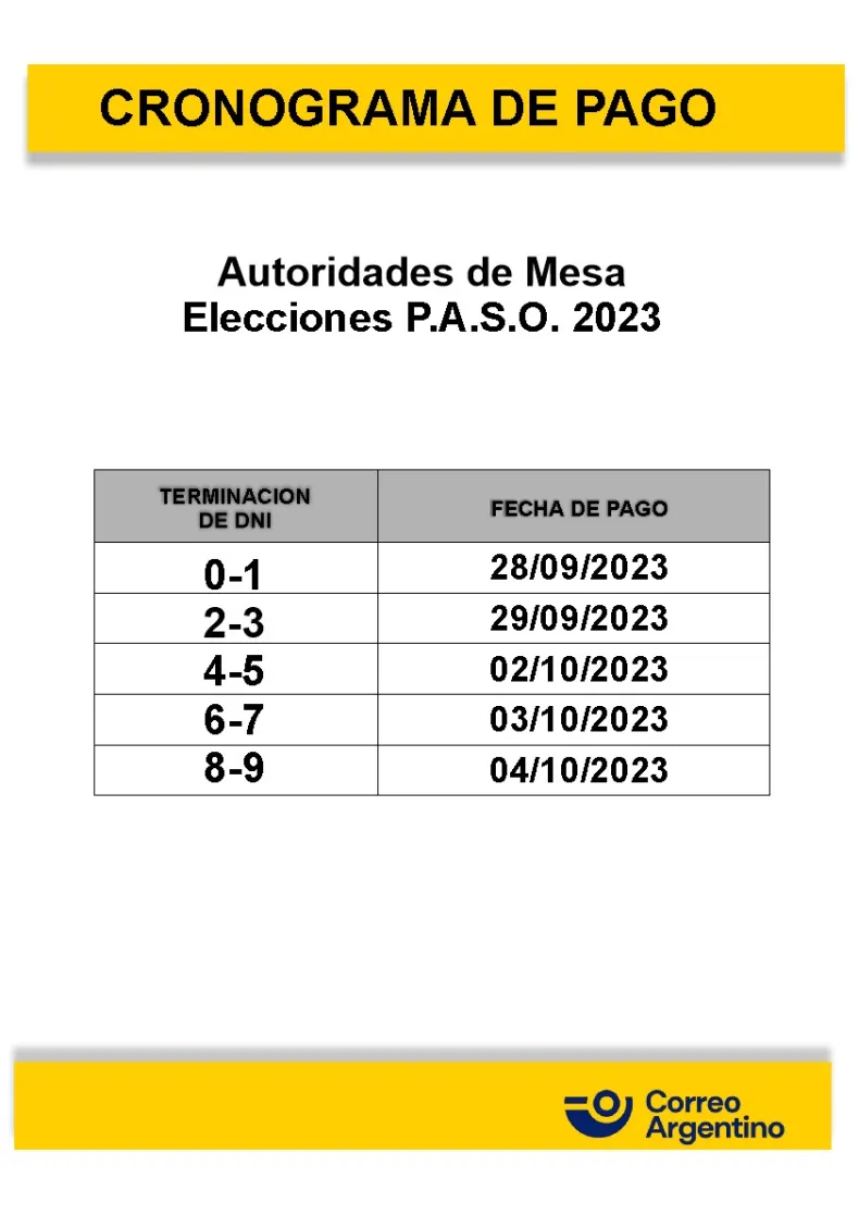 De este modo, en San Juan, las personas que estuvieron de autoridades de mesa y también de delegados, deberán asistir al Correo Argentino a recibir el pago desde este jueves 28 de septiembre, dependiendo de la terminación del DNI, según indicó 0264Noticias.