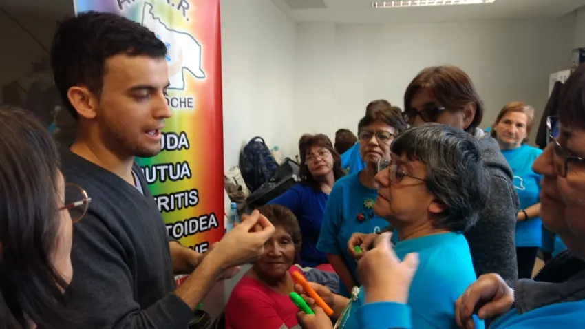 "Cuando les propuse a los chicos que orientáramos la clase a un fin solidario, enseguida se entusiasmaron. Organizamos varios encuentros entre los estudiantes y las personas del grupo AMAR para entender sus necesidades. En el taller los alumnos aprenden a bocetar el objeto y a darle las características necesarias para la impresión; hicimos abrochabotones, calzadores de medias, abrebotellas, portallaves. Es un proceso de diseño, prueba y corrección; vamos probando hasta que llegamos a las versiones finales", dijo el profesor seleccionado.