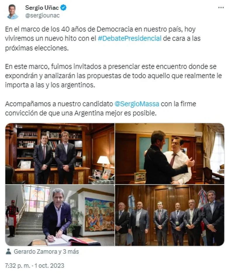 A través de su cuenta de X, el Gobernador Uñac expresó su apoyo al candidato Sergio Massa, subrayando la firme convicción de que es posible construir una Argentina mejor. Este respaldo es una muestra del compromiso de Uñac con un futuro promisorio para el país y su confianza en el liderazgo de Sergio Massa.