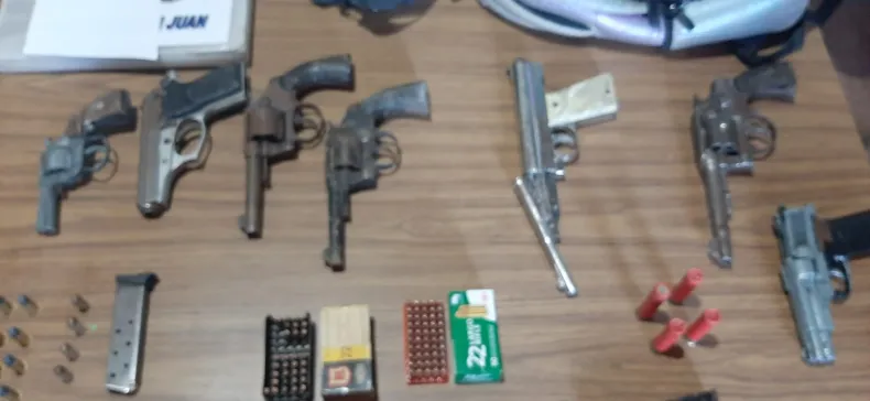 Como resultado de esos procedimientos, los pesquisas secuestraron: tres bicicletas tipo todo terreno, 1 pistola calibre 45, 1 pistola Bersa 380, 1 revolver calibre 38, 1 revolver calibre 22, 1 revolver calibre 38 mm corto, 1 revolver calibre 22 mm, 1 pistolón, 50 cartuchos calibre 22 mm (largo) marca obrea, 31 cartuchos calibre 22 mm largo sinoxid, 12 cartuchos calibre 38, 4 cartuchos calibre 380, 4 cartuchos calibre 14, 1 cargador de 9 mm, 1 cargador pistola 22 mm, así también se incautaron celulares y balanzas de precisión.