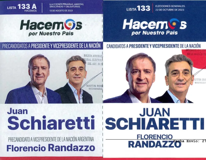Hacemos por Nuestro País ha sido el espacio que más ha variado en sus boletas, aumentando considerablemente la imagen de Juan Schiaretti y Florencio Randazzo transformándola en un primer plano. También se han realizado cambios en los colores y se ha optado por utilizar letras mayúsculas en todo el diseño.