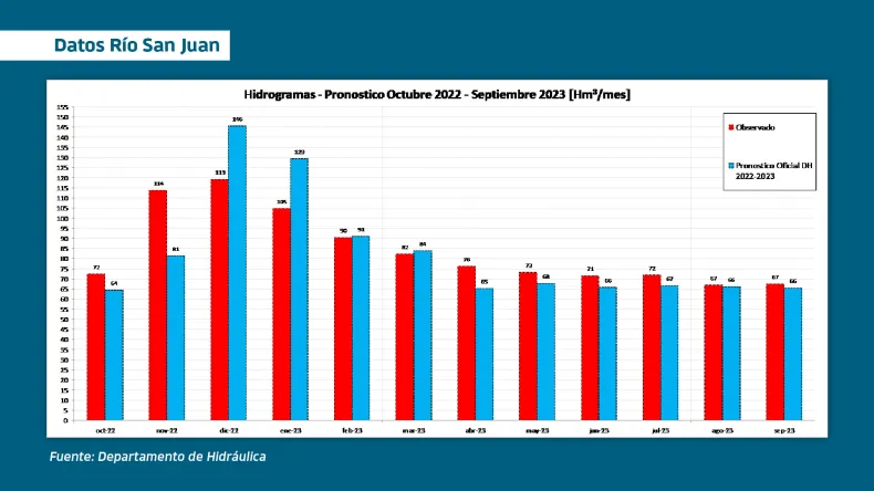 Hidráulica evaluó el comportamiento del Río San Juan durante el ciclo 2022-2023 que finalizó el 30 de septiembre pasado, y realizó una comparación con el pronóstico presentado en octubre de 2022.